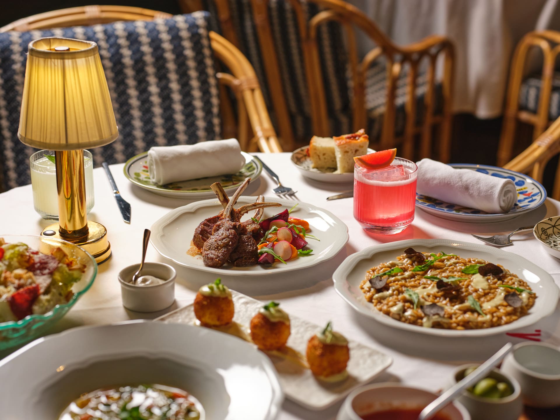 Break your fast at Arrogante with a curated Italian Iftar celebrating comforting classics and refined signature dishes. Start with dates, classic minestrone, or arancini di stracotto filled with braised short rib ragù and saffron rice. Mains include porcini mushroom risotto with Parmigiano Reggiano, grilled lamb chops with carrot purée and caramelised plums, served alongside truffle fries.